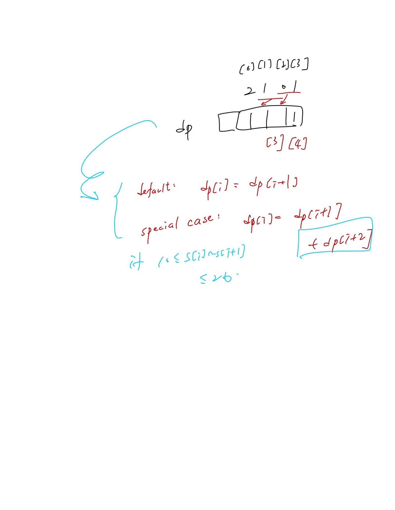 - 以一般的 case 而言 (我們一個一個數,應該 dp[i] = dp[i+1])