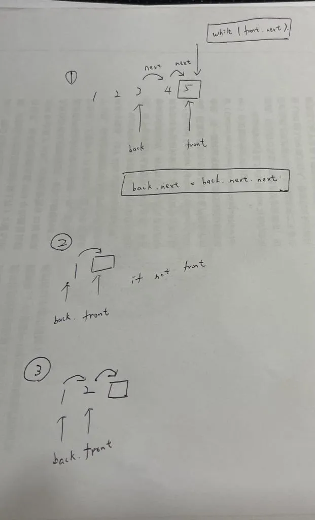 front, back = front.next, back.next