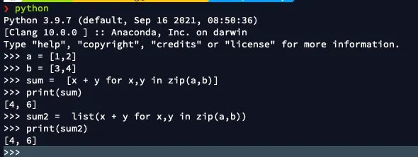 sum2 = list(x + y for x,y in zip(a,b))