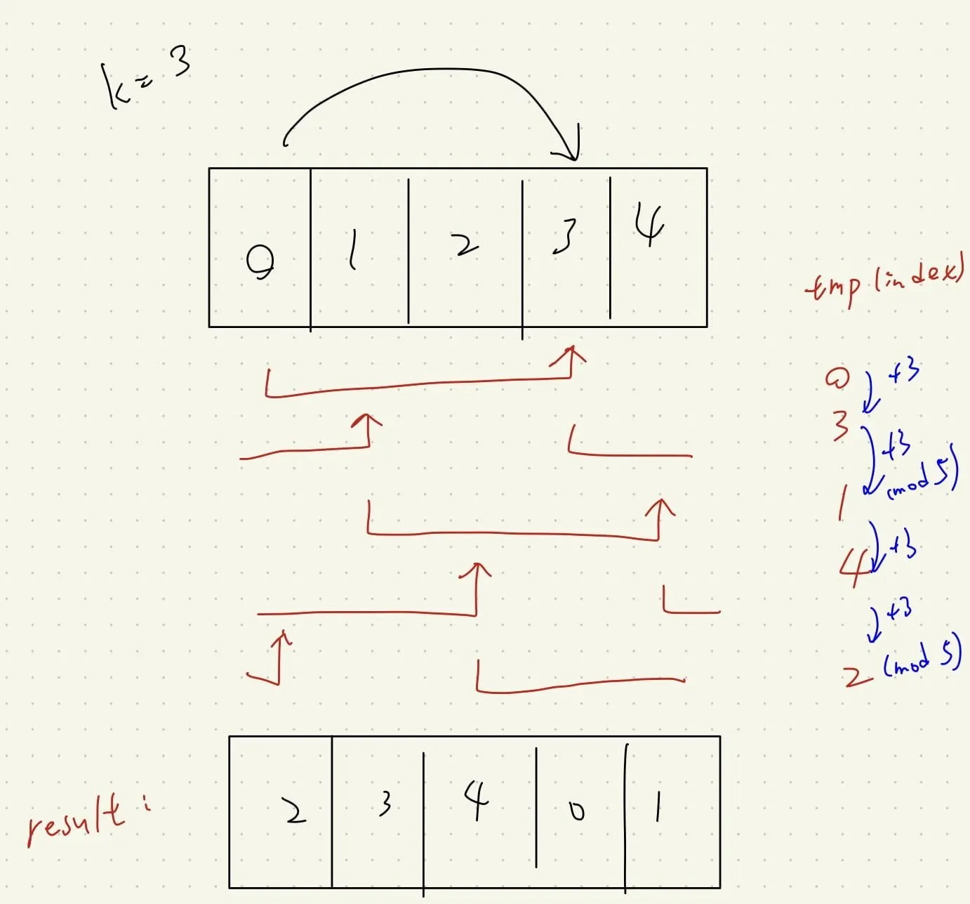 我們再次觀察,k=3 時,我們下一個移動的目標 next_i = (i+k)%(array長度) <- 取餘數