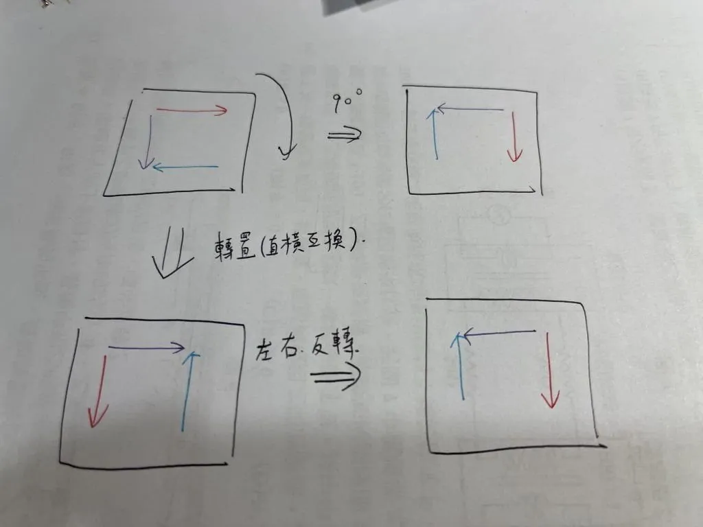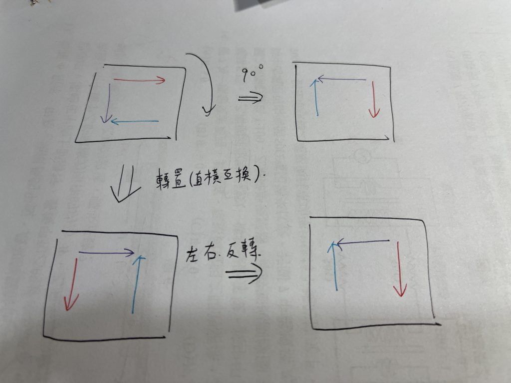 - 示意圖: (轉90度 = 轉置 + 左右翻轉)