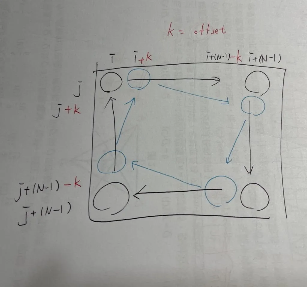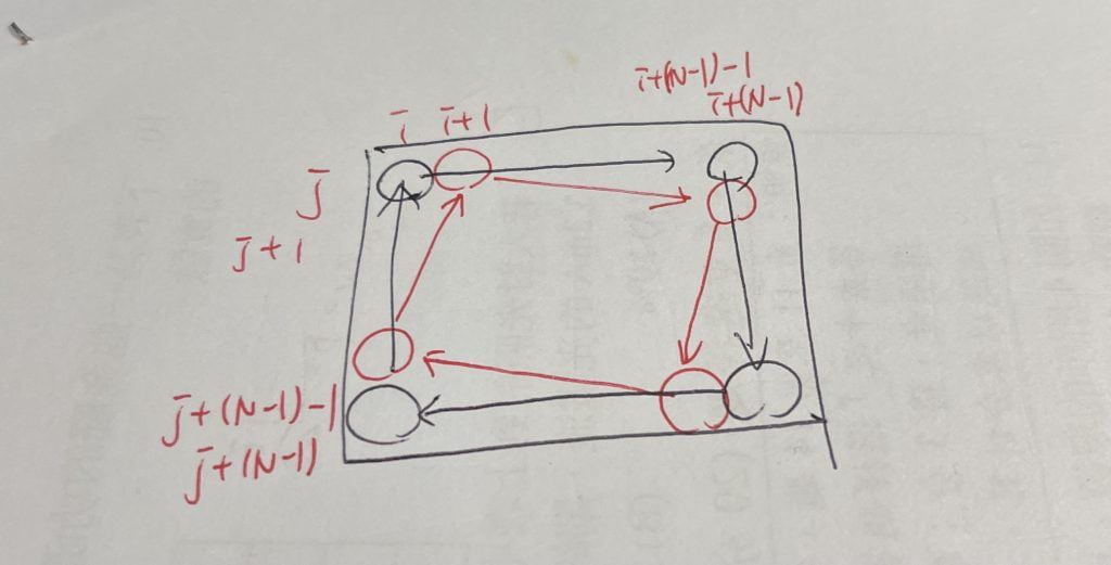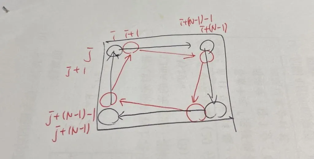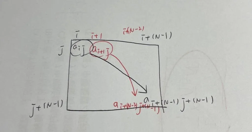 - 示意圖:(仔細觀察 i,j 變化量出現的位置,牽扯到 x軸, y軸 值上面的移動。)