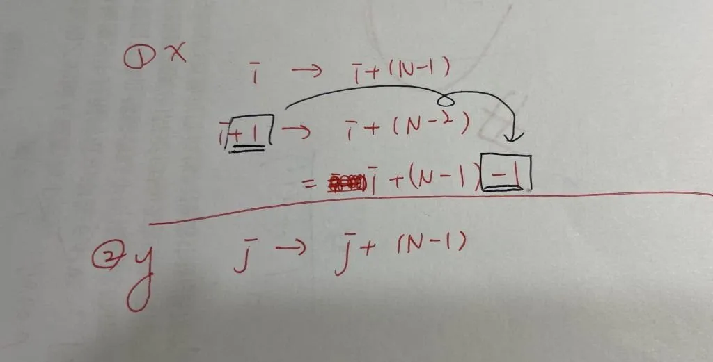 對應的 180度 x軸上後的變化量 為 i+(N-1)-offset(變化量)