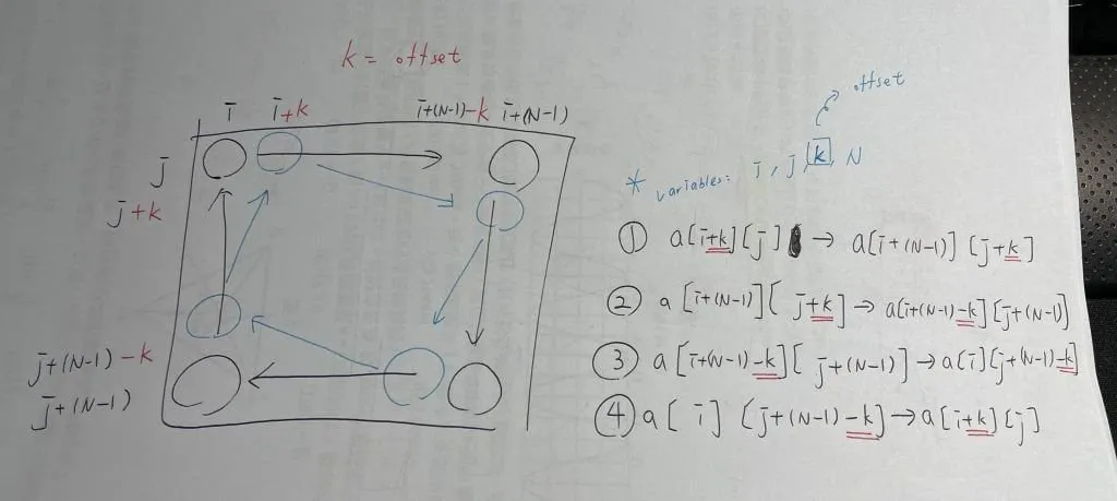 matrix[i][j] = matrix[-j+(N-1)][i] # 1