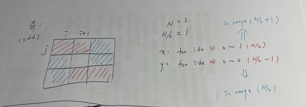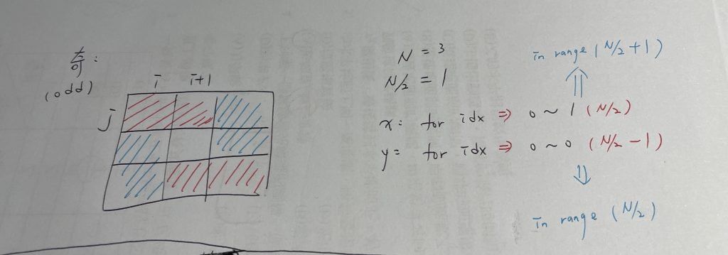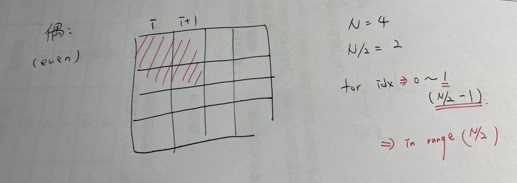 幾乎都出現了 in range (N/2),只有在奇數的時候多出現一個 in range ((N/2)+1)