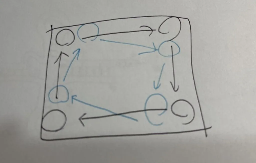 - 示意圖:(看得出來每次互換只扯到四個東西吧?)