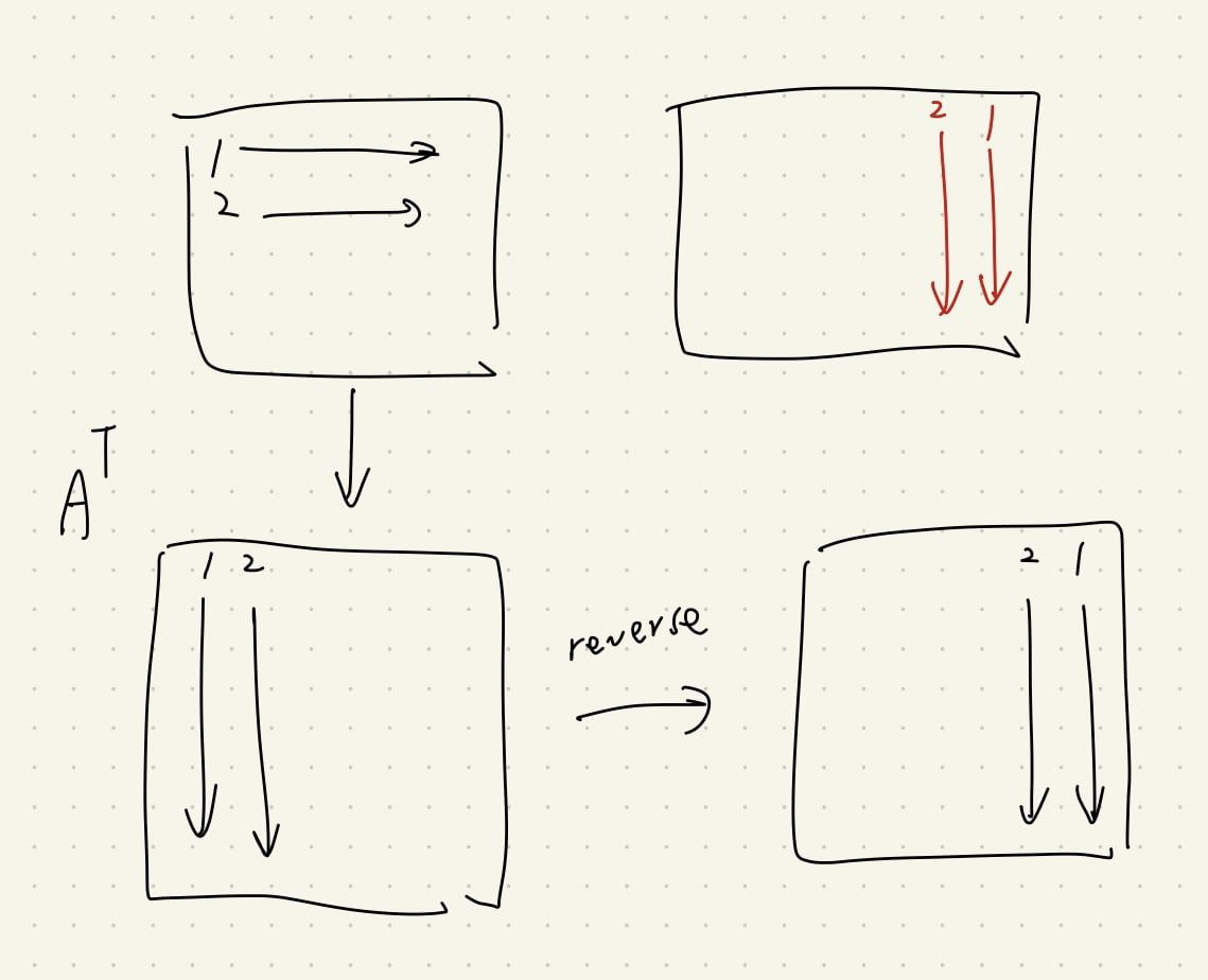 直接看圖吧! 這題我們利用 「轉90度 = 轉置 + 左右翻轉」的概念
