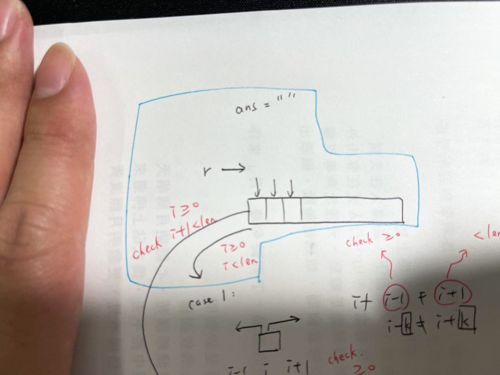 while(idx-k >= 0 and (idx+1)+k < len(s) and s[idx-k] == s[(idx+1)+k]):