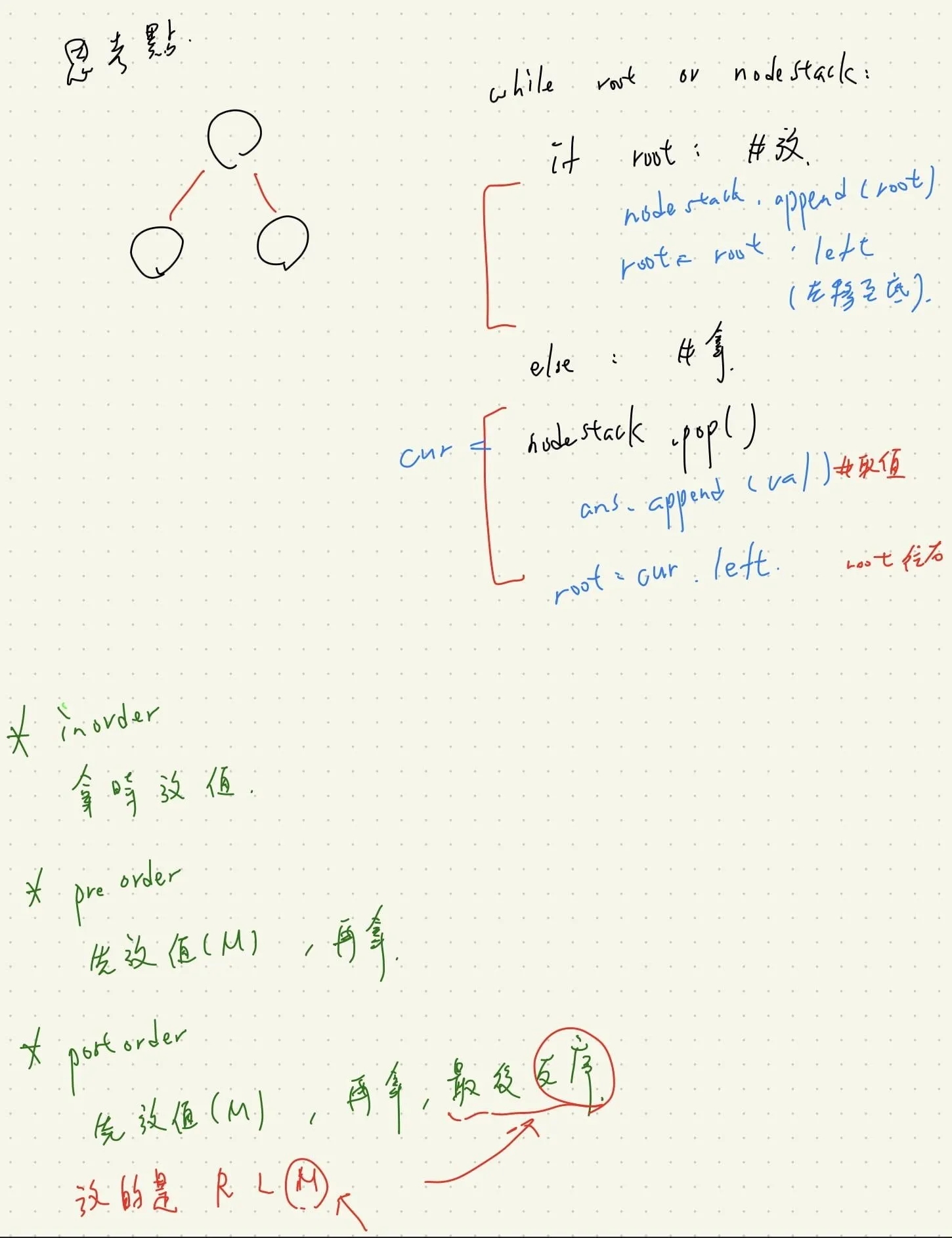 - postoreder - RL(M):先放值(mid),再拿,最後反序