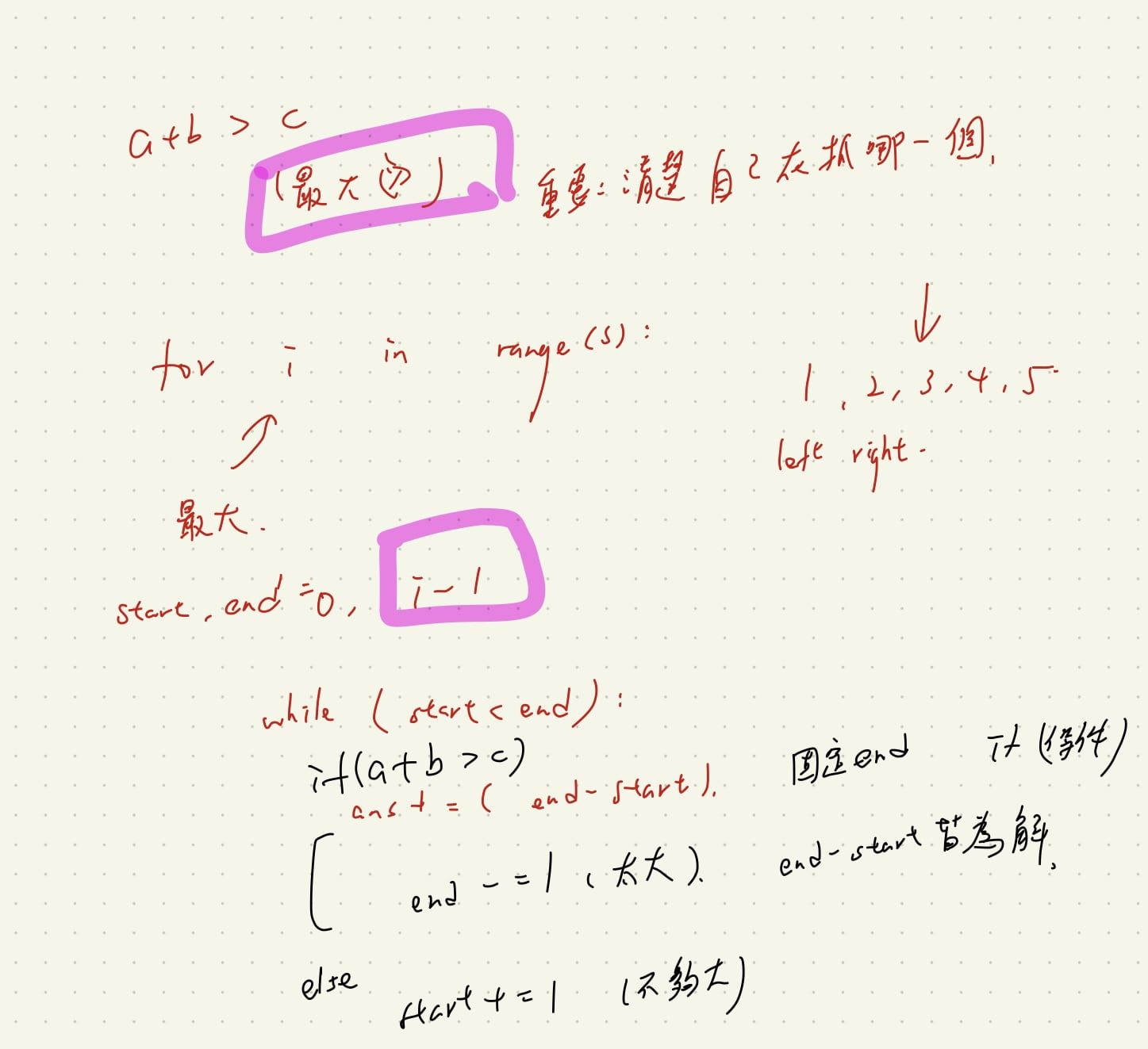 而一般情況是,start += 1,來去滿足「還不夠大」的部分。