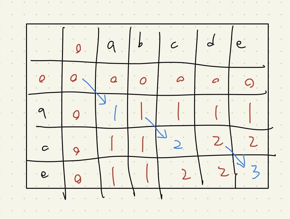 dp[i][j] = dp[i-1][j-1] + 1 # same case, update value form text[i-1][j-1]