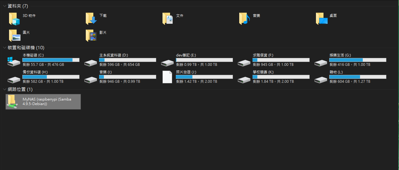 step 3. 連接成功後,就會在網路位置看到我們的 MyNAS 資料夾,裡面對應的資料,就是我們所插入 rpi3 的實體硬碟。