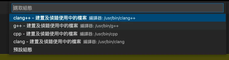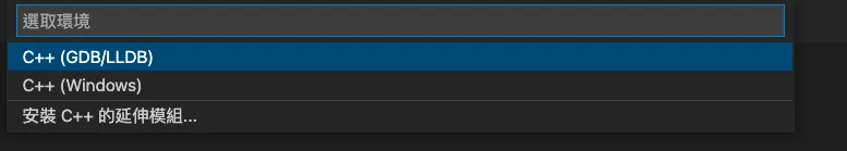 step2. 「在開啟檔案的畫面」,選擇 C++ (GDB/LLDB),再選擇 g++ (可以自己針對需求修改)