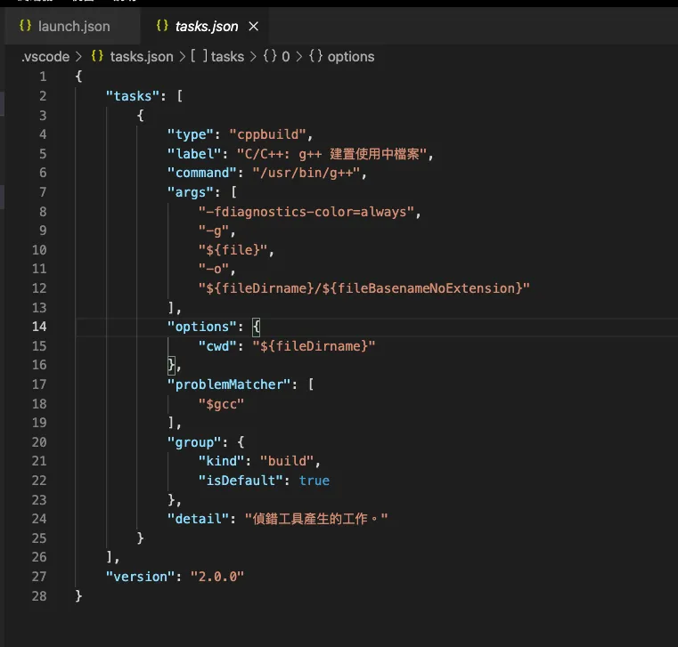 step4. 先看我們的「./.vscode/task.json」,我們會在這裡決定我們要怎麼「編譯程式」