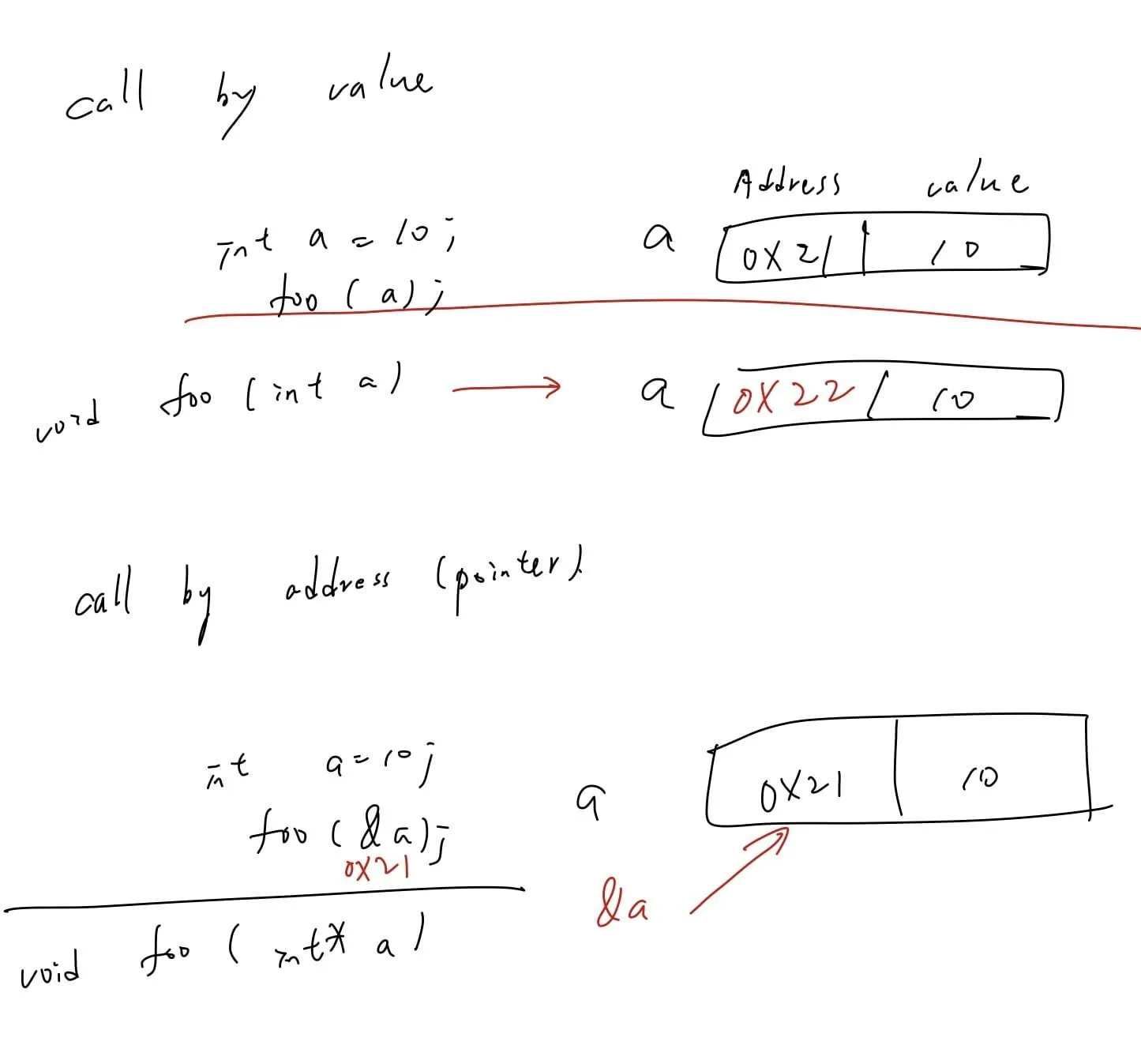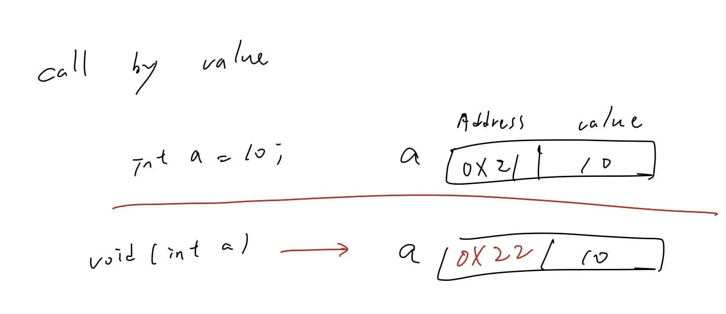 而 call by address(pointer) 我們以「記憶體位置 (address)」作為我們的「value」並傳入 function