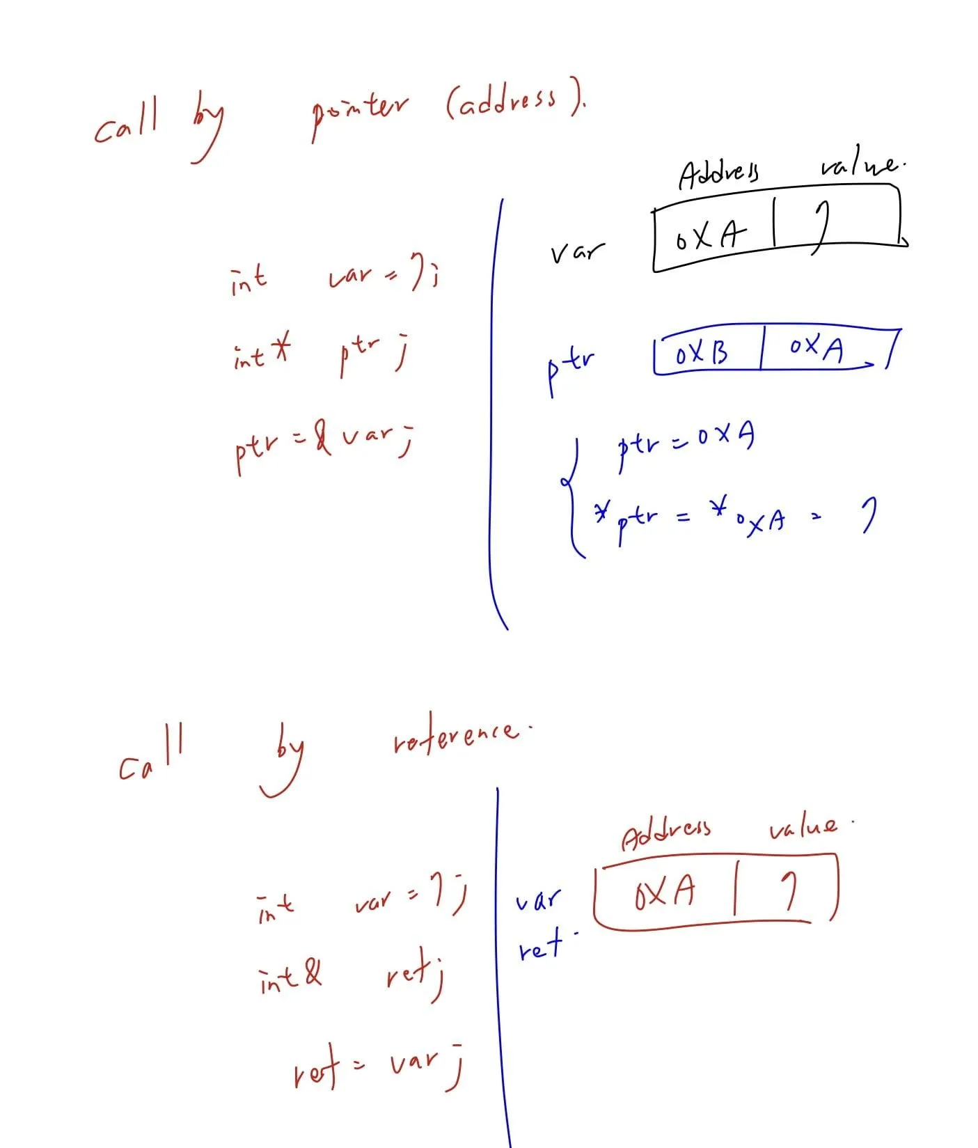 正如其名,call by address 就是直接呼叫他的記憶體位置進行修改,
