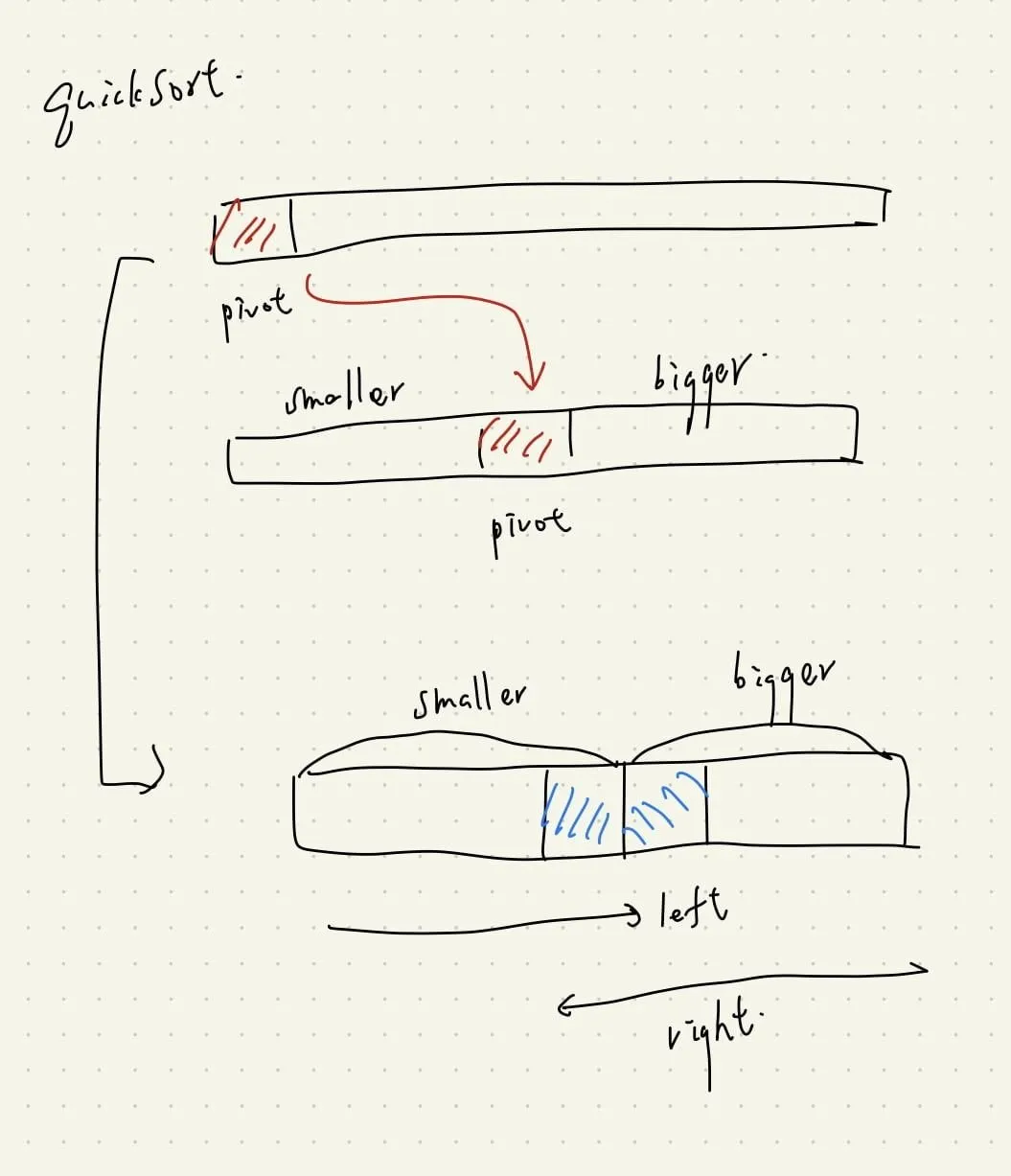 - 讓 right 右邊的一切都是 bigger (than pivot)