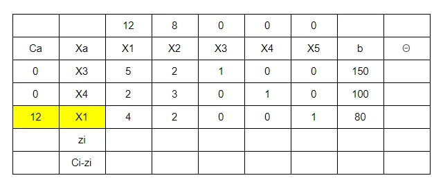 - - 計算Θ,再找pivot row(綠色):pivot column乘上Θ等於b