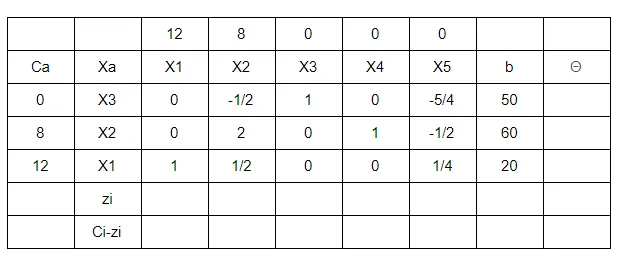 好的,這回合我們找到了解 (X1,X2,X3,X4,X5) = (20,0,50,60,0),