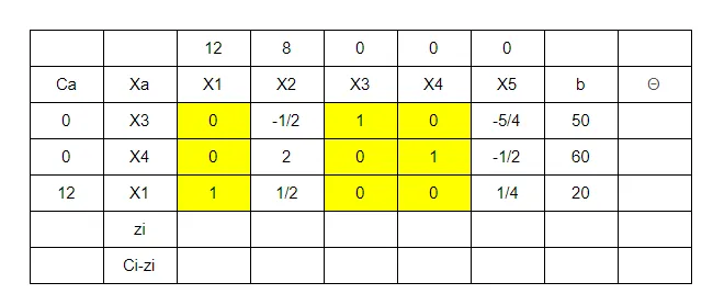 以上面例子來說,我們找到的是X2(pivot column)與X4(pivot row),