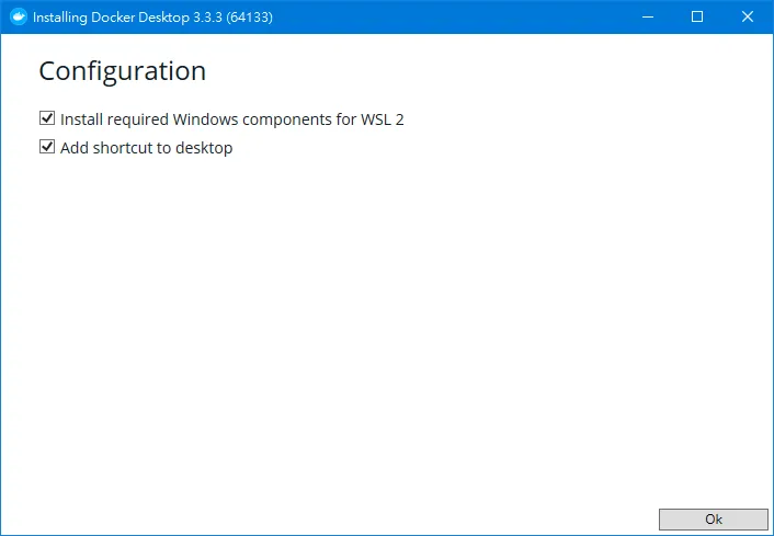 step 2:安裝時記得設定安裝「WSL 2」的相關套件,開始安裝 Docker Desktop !