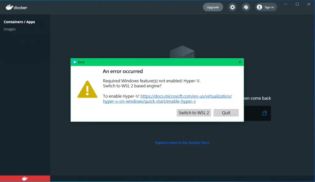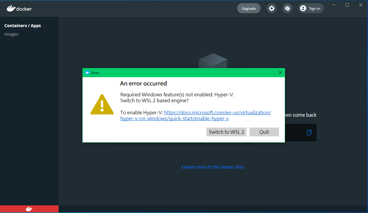 Required Windows feature(s) not enabled: Hyper-V.