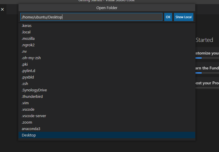 例如說,這邊以遠端的桌面 (/home/ubuntu/Desktop) 進行示範,並按下「OK」