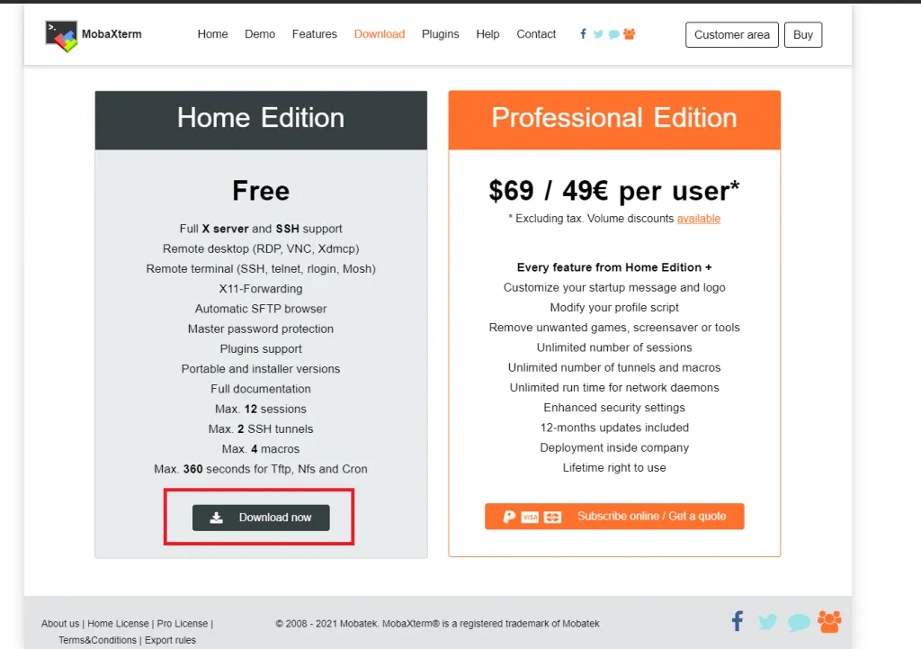 - MobaXterm 官方網站的下載頁: https://mobaxterm.mobatek.net/download.html