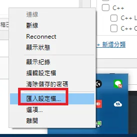 從右下角選單「右鍵」OpenVPN,選擇「匯入設定檔」,