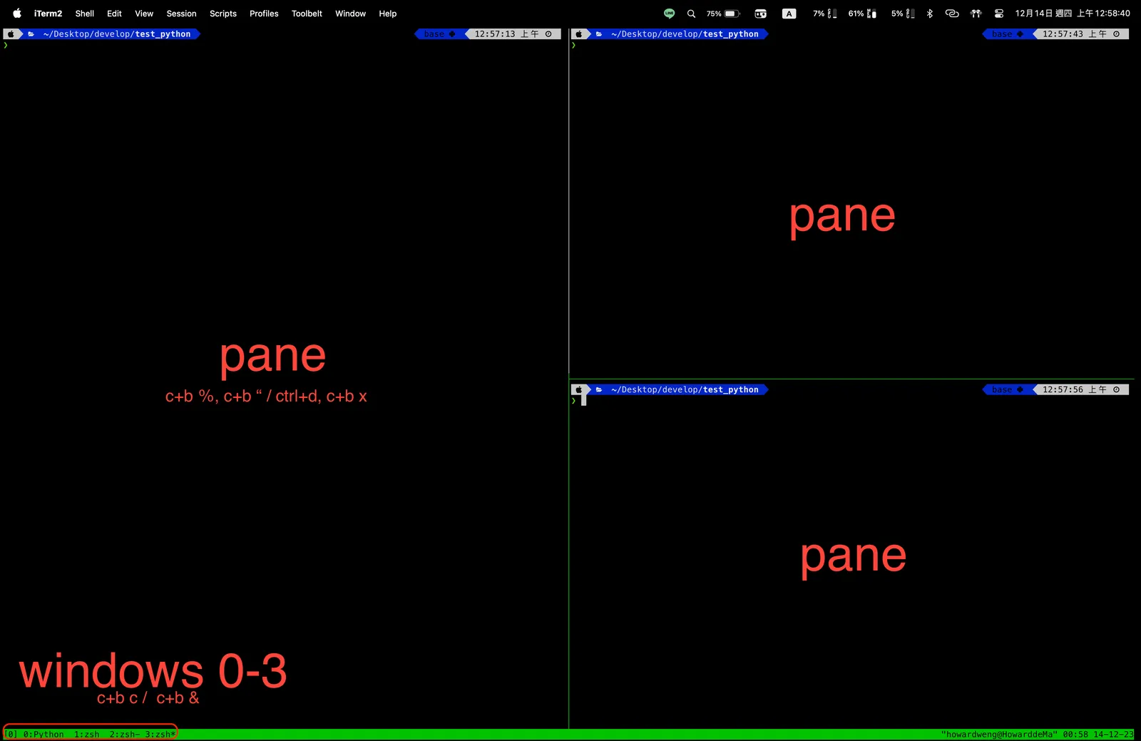 這邊要記得,因為可以連續切換,所以在「換到想要的 pane」之後記得先停頓一下。