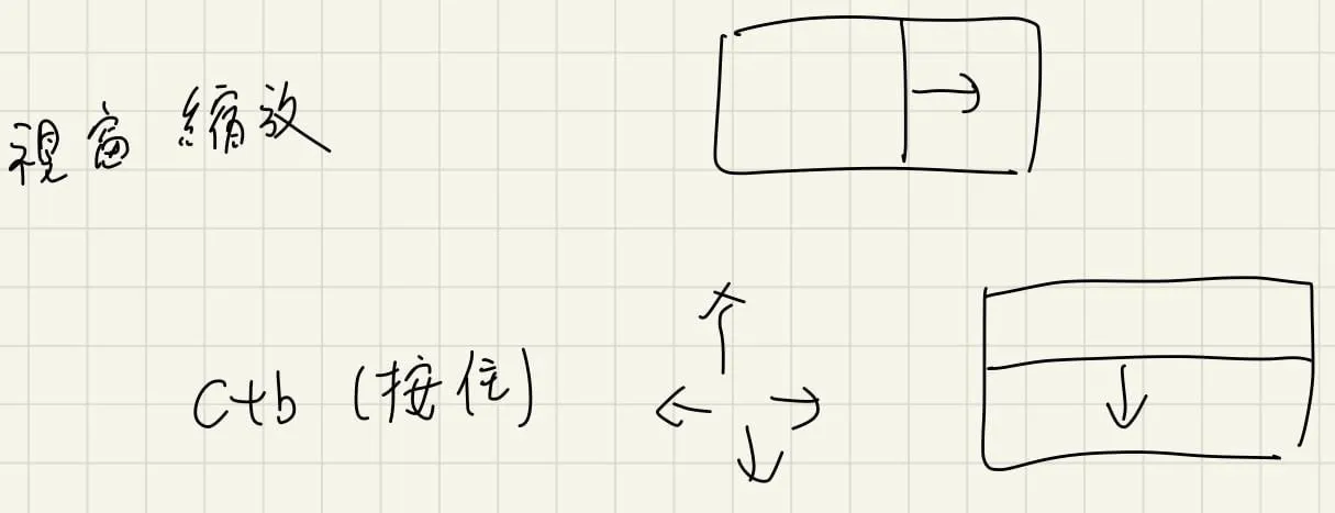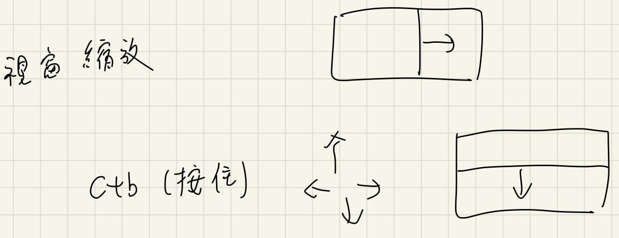 有時候我們會想要對於視窗進行調整,這時候我們可以下「c+b(按住) 上下左右」