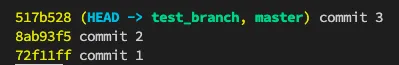 我建立了一個文件 test.txt,並依序 commit 了三次,commit message 對應內容。