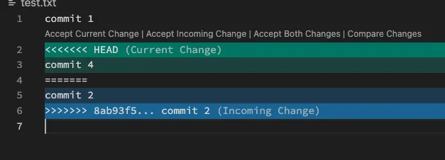 你寫的 commit 4 跟 commit 2 都要搶第二行,