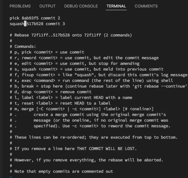我們就可以針對到現在的 commit 2,3 進行 commit 重組,不包含我們輸入的 commit 1