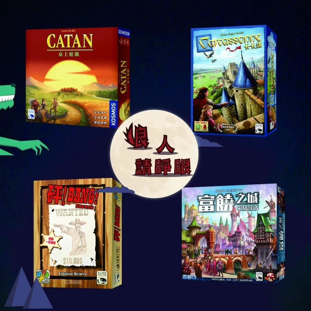 其中 Catan(卡坦島)、Citadel(富饒之城)、Carcassonne(卡卡頌)、Bang