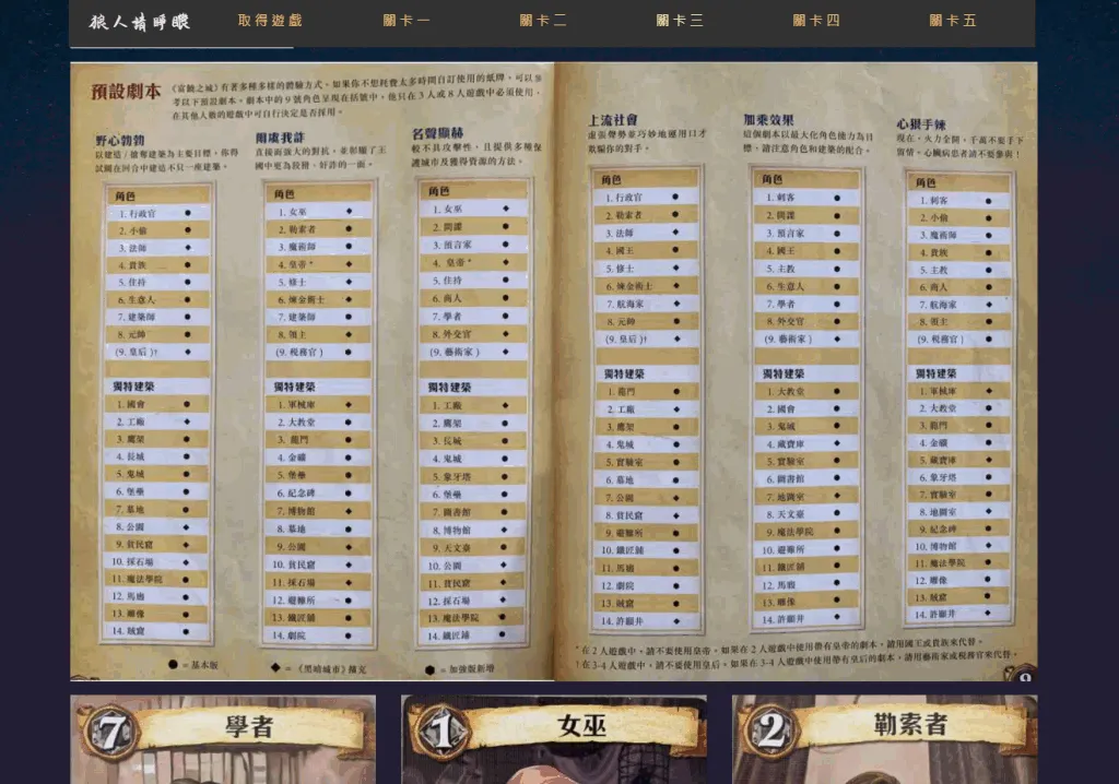 由「狼人殺 與 台灣四大桌遊 (3C1B)」組成的遊戲內容