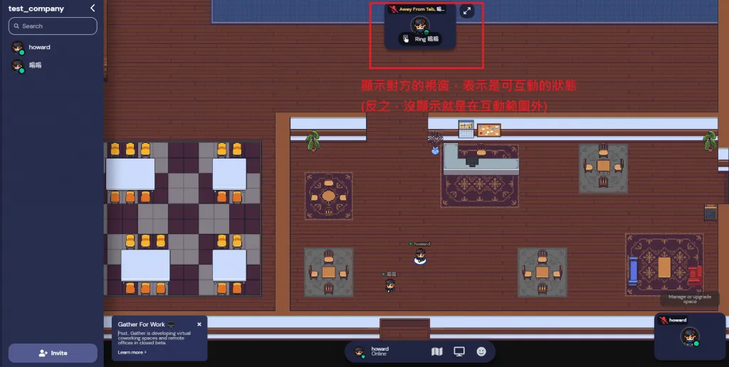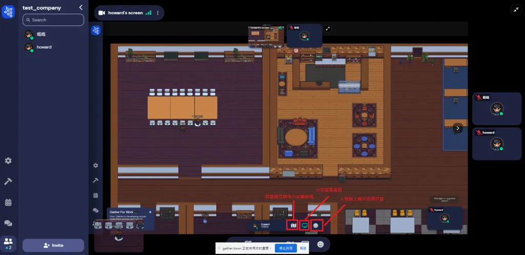 在 gather town 裡面,要實現他的種種特別功能就是要靠與場景物件互動!