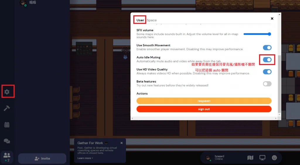 - 進入會議室前可以檢視自身畫面 (gather town 只有一開始可以,或者可以躲去沒人看得角落檢查視訊XD)
