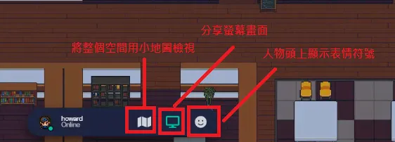 - 中間下面有三個設定:分別為 小地圖、分享螢幕畫面、顯示表情符號