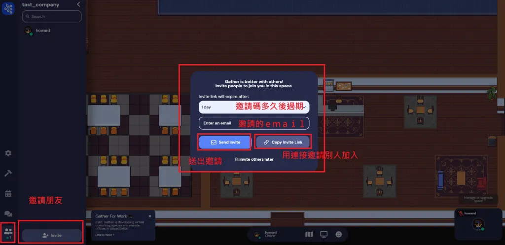 我們可以從左上角的查看現在線上人數那邊進行發邀請的動作,
