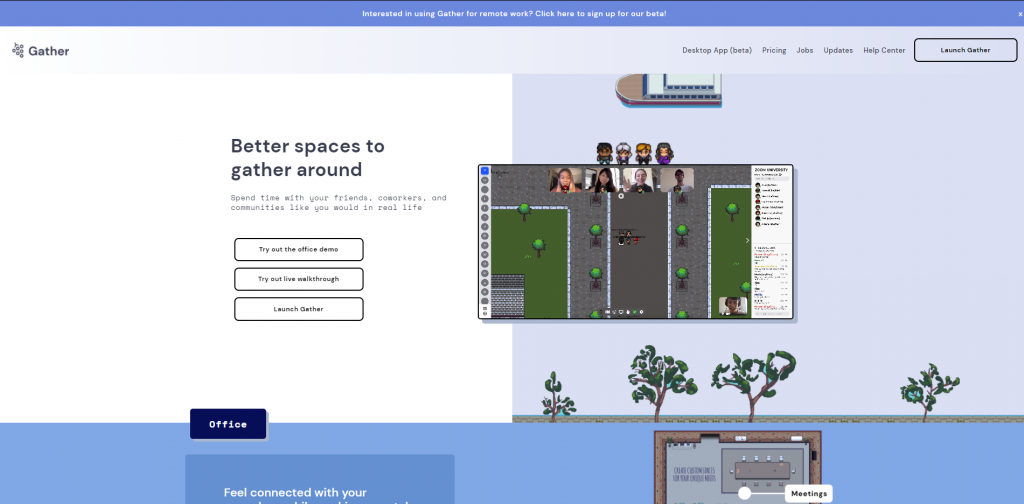 - 都有手機板/網頁版/桌面應用 (gather town 的手機板聽說還有待優化的空間)