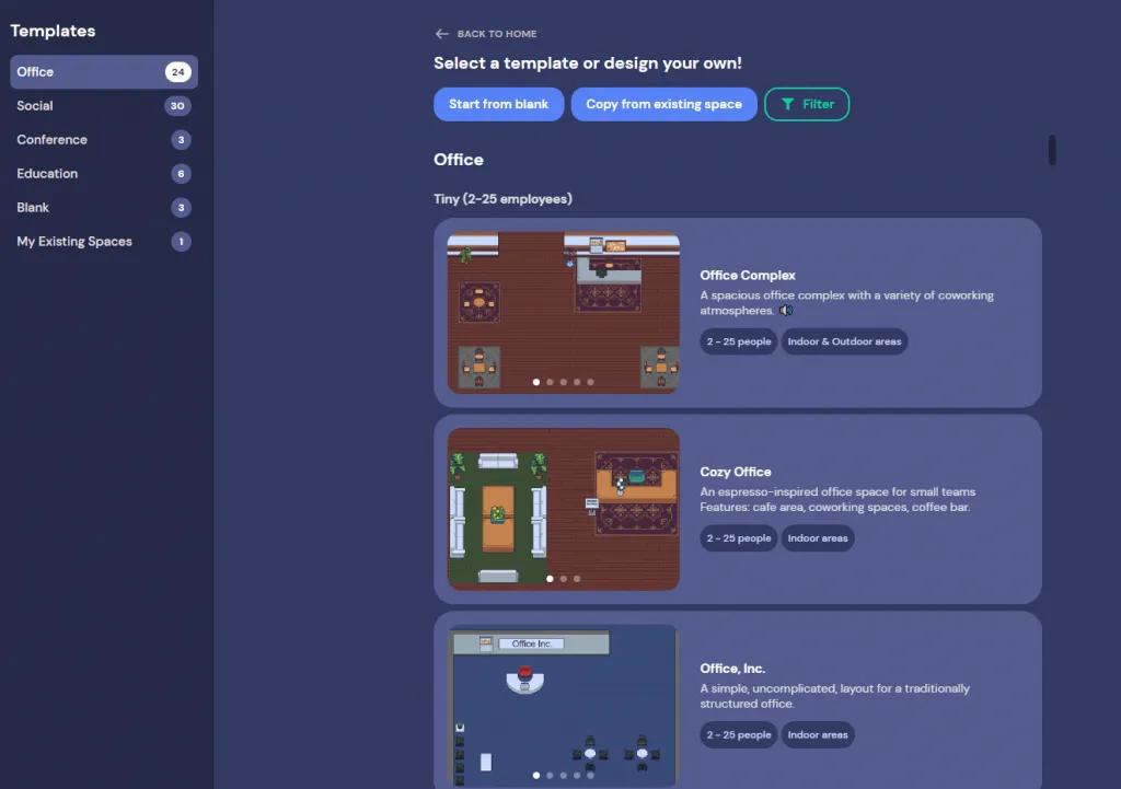可以看到已經存在很多的範本可以給你選,但也可以選擇空白的,完全從零打造自己的辦公室!