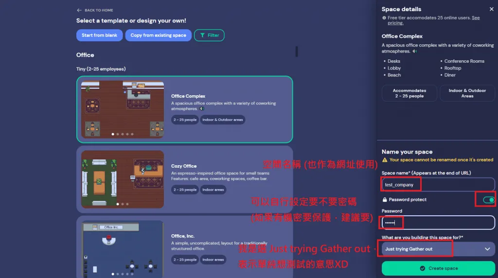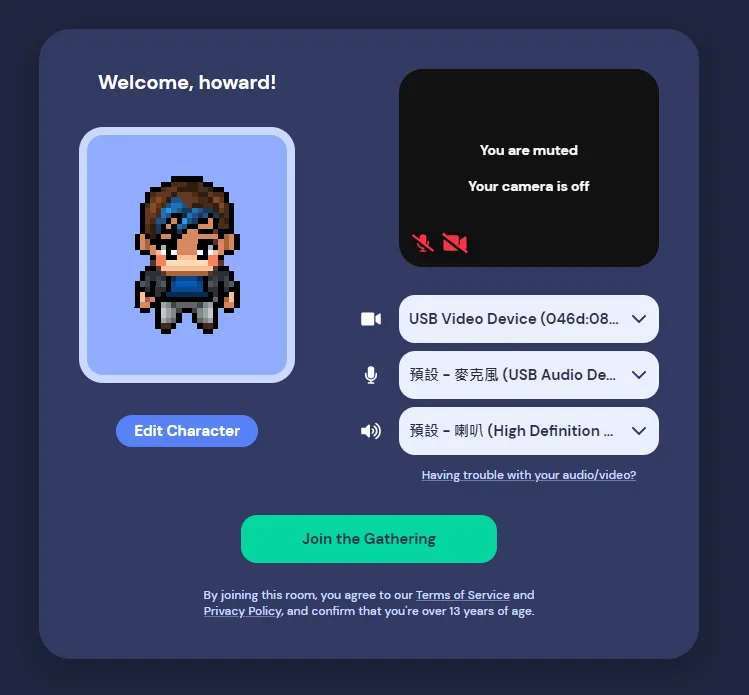 在剛剛的官網中,可以從右上角的 Launch Gather 進入到以下畫面。