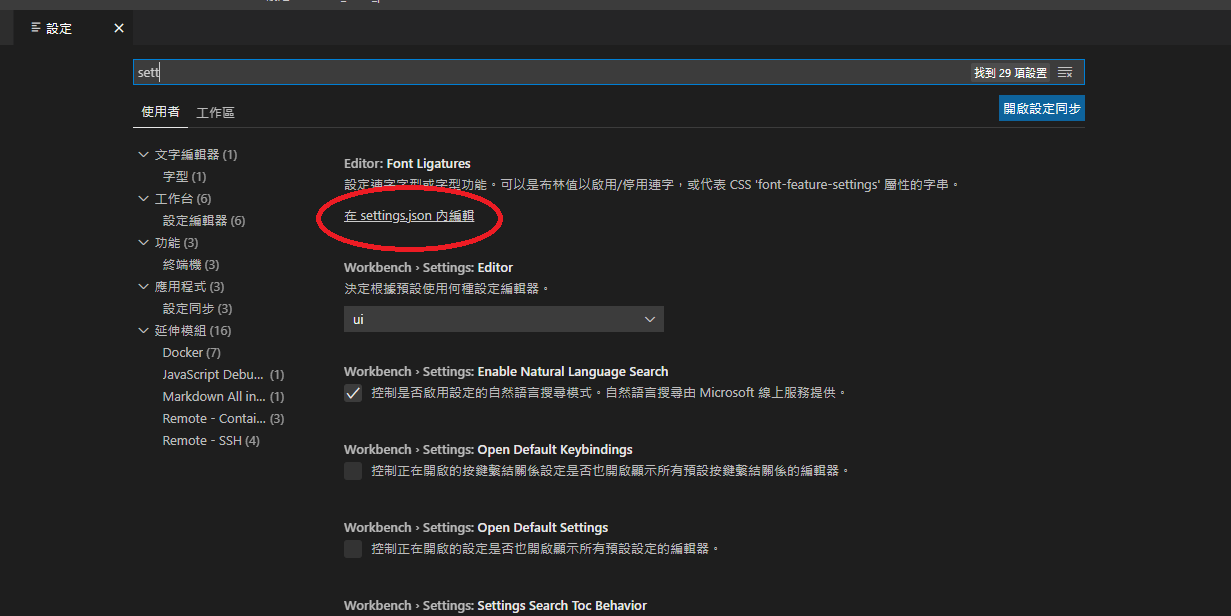 我們打開並修改設定「settings.json」,