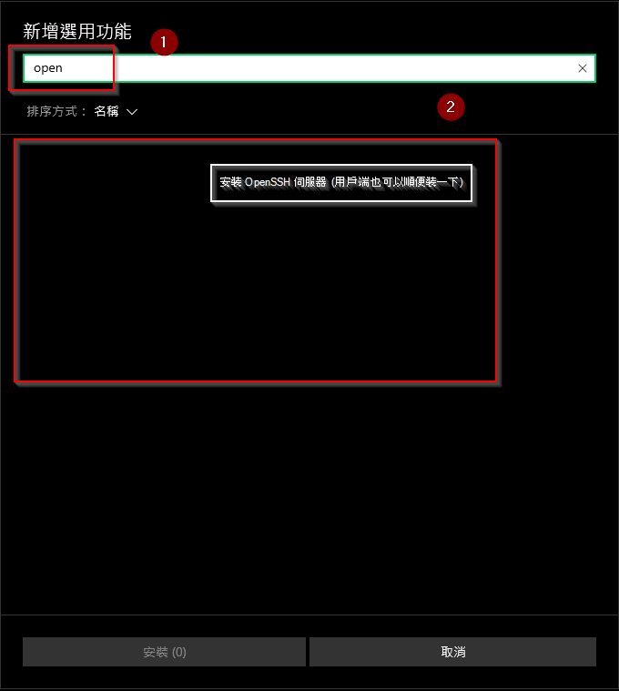 可以先從下方的「已安裝功能」嘗試搜尋 OpenSSH 看看有沒有曾經裝過。