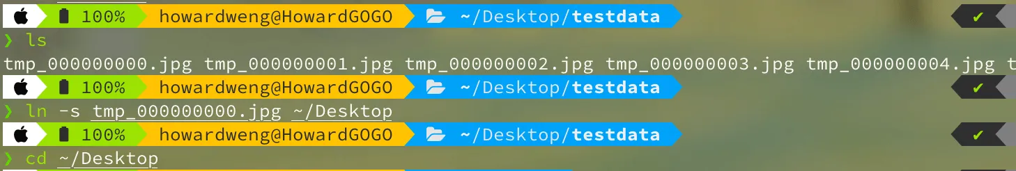 目前的資料夾裡面有很多圖片,我們用以下指令在桌面建立捷徑。