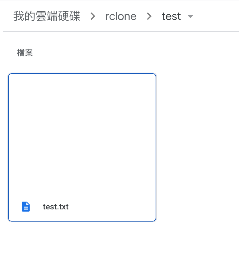 △在根目錄新增 rclone 資料夾,並在裡面新增了一個資料夾與檔案!