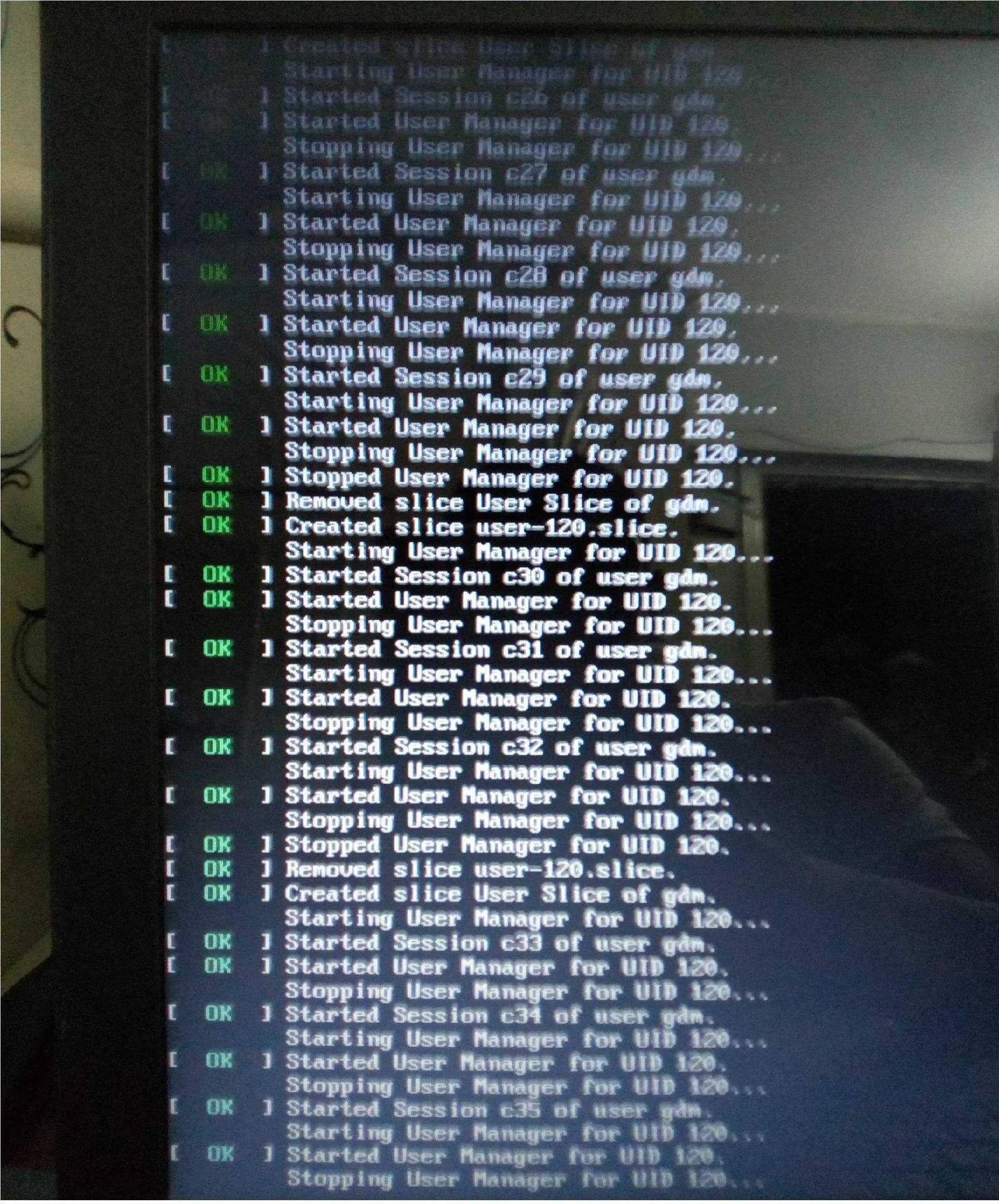 398 - Linux 問題解決【Linux】Ubuntu 問題解決: Started user manager for uid xxx前言此為 Linux / Ubuntu 上遇到以下問題,個人的解決問題筆記Started user manager for uid xxx 解決方法會出現此問題應該是硬碟容量滿了,如果無法順利開機,可以使用 ssh 連線進去刪除一些檔案。問題圖片可以參考以下的 ReferenceReferencehttps://askubuntu.com/questions/1147720/ubuntu-stops-and-says-failed-to-start-user-manager-for-uid-120