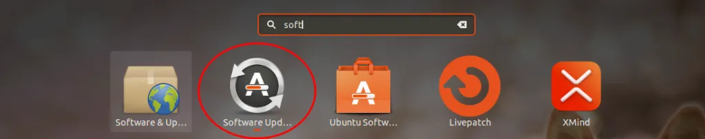 - 我們點擊左下角開啟所有的應用程式,我們可以搜尋 software 找到以下應用「Software Updater」