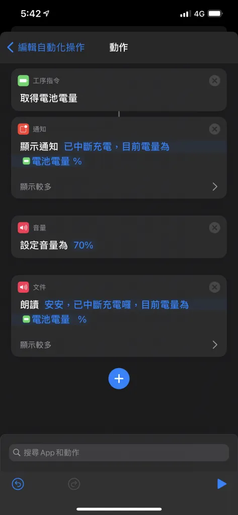 - iOS自動化應用:iPhone 充電時自動唸出「現在剩餘電量」